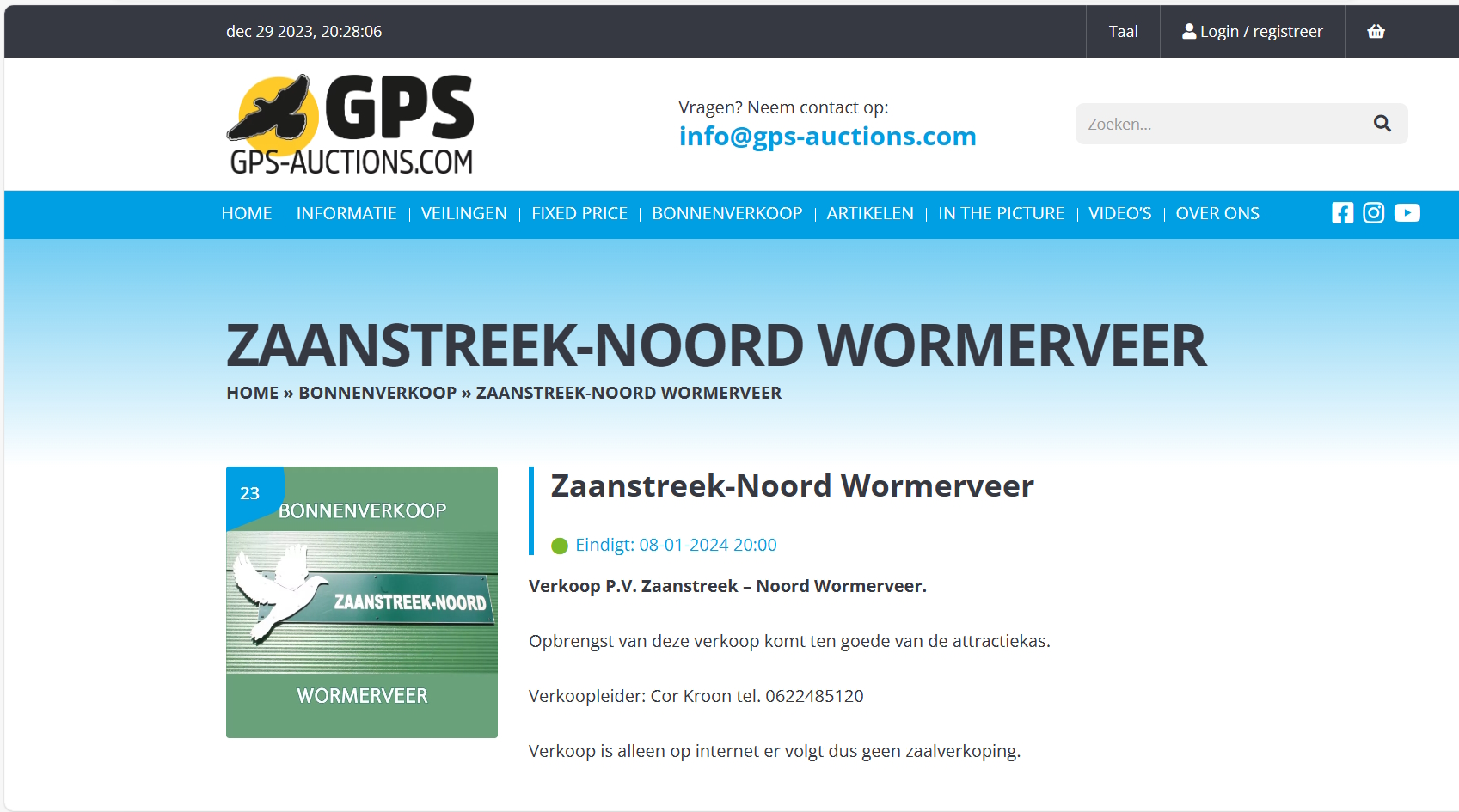 Onze club houdt een bonnenverkoop op GPS-AUCTIONS.COM en hierop staan heel leuke bonnetjes! Daar wil ik onze volgers graag even van op de hoogte brengen. Velen weten het natuurlijk wel: PV Zaanstreek Noord is tevens Nationaal Inkorfcentrum en we hebben vele club leden die op de grote fond super goed presteren! Maar ook op de dagfond en op de vitesse zijn wij een aantal zeer goede en bekende liefhebbers rijk! De bonnetjes verkoop eindigt op 8 januari om 20.00 uur. Wij hebben ook een bon (lot 14) voor een jonge duif 2024 uit ons kweekhok geschonken en daar gaan we een hele mooie schenking van maken! Houdt u de veiling in de gaten?!